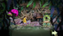 Вернитесь на площадку Чаши сохранения. Слева от нее желтая лиана ведет к небольшому уступу с контейнером. С него допрыгните до кучи разноцветных Кристаллов и вернитесь на уступ. По мостикам доберитесь до первого золотого Сундука. По гнилой лиане перепрыгните на площадку со вторым золотым Сундуком, в котором хранятся 1100 монет. Поднимитесь на уступ с белым Кристаллом и возвращайтесь на площадку Чаши сохранения.